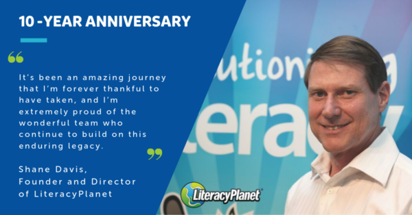 Shane Davis, Founder and Director of LiteracyPlanet, said, “When launching LiteracyPlanet in 2009, I knew we had created something very special because of the excitement we were experiencing from parents and teachers, but most importantly from their children and students. Over the following 10 years, this has been reinforced countless times when hearing of the learning successes that have been achieved. It has been an amazing journey that I’m forever thankful to have taken, and I’m extremely proud of the wonderful team that continues to build on this enduring legacy.”