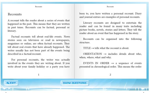 Exercises are linked to each lesson and enable students to reinforce their knowledge of each text type. A range of interactive questions require students to recognise and identify: