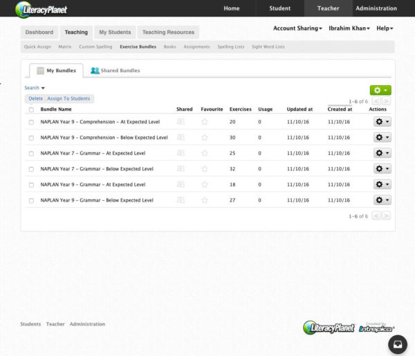 Bundles can be assigned to an individual student, a class or year level and feature an automated schedule of exercises for each literacy strand. When a teacher assigns the bundle, students are placed on a NAPLAN-oriented learning path. Exercises can be modified at any time.
