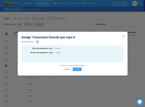 New addition to the Group Strand Report In addition to viewing your students’ results across literacy strands in LiteracyPlanet, teachers now have the ability to see assignment status of missions Read more…
