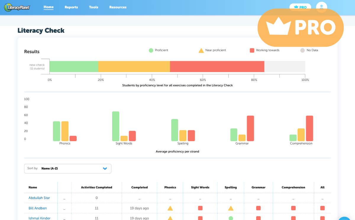 Sign up for free and begin with a purpose-built Literacy Check to assess your students’ proficiency across all key literacy strands. Set it up easily in just a few clicks, and complete the full check in a 30-minute lesson.