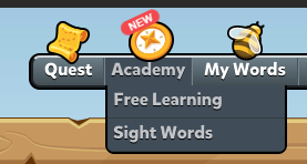 On the Web/Desktop your students will be able to access Sight Words from the Academy menu.