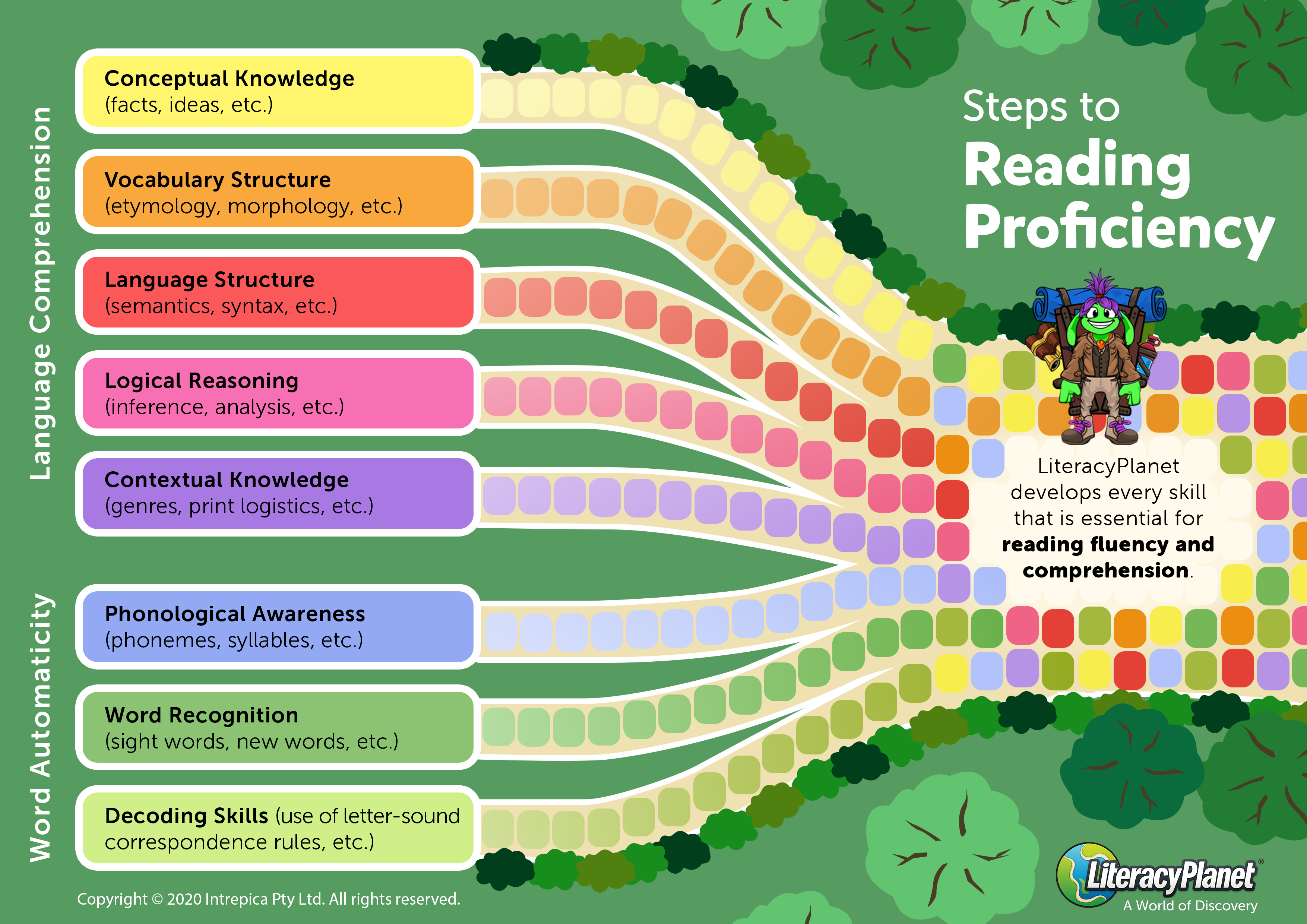 A bright and colourful poster that highlights the different types of Language Comprehension and Word Automaticity.